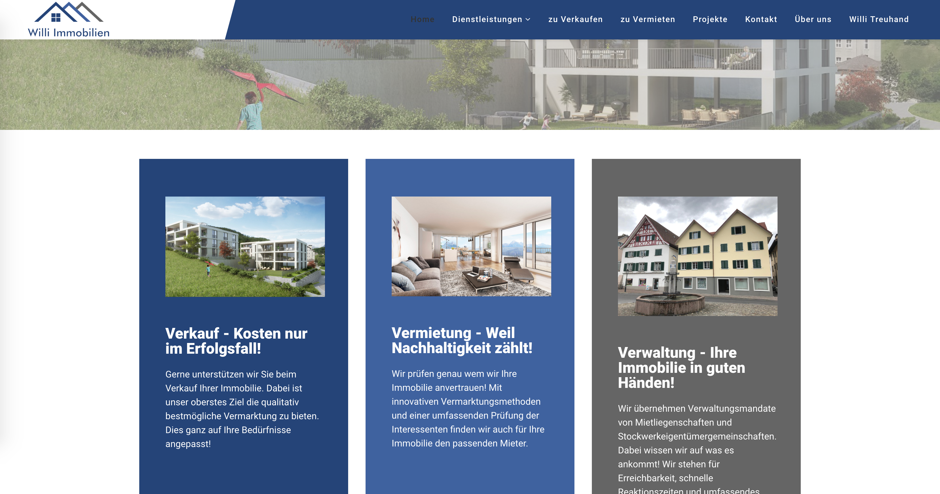 Willi Immobilien und Willi Treuhand in Mels mussten nahezu gleich gestaltet werden, mit einem Unterschied, nämlich den Farben.